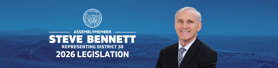 — Steve Bennett represents the 38th Assembly District, which includes Camarillo, Fillmore, Ojai, Oxnard, Port Hueneme, Santa Paula, and Ventura. He is chair of the Budget Subcommittee No. 4 on Climate Change, Natural Resources, and Transportation.