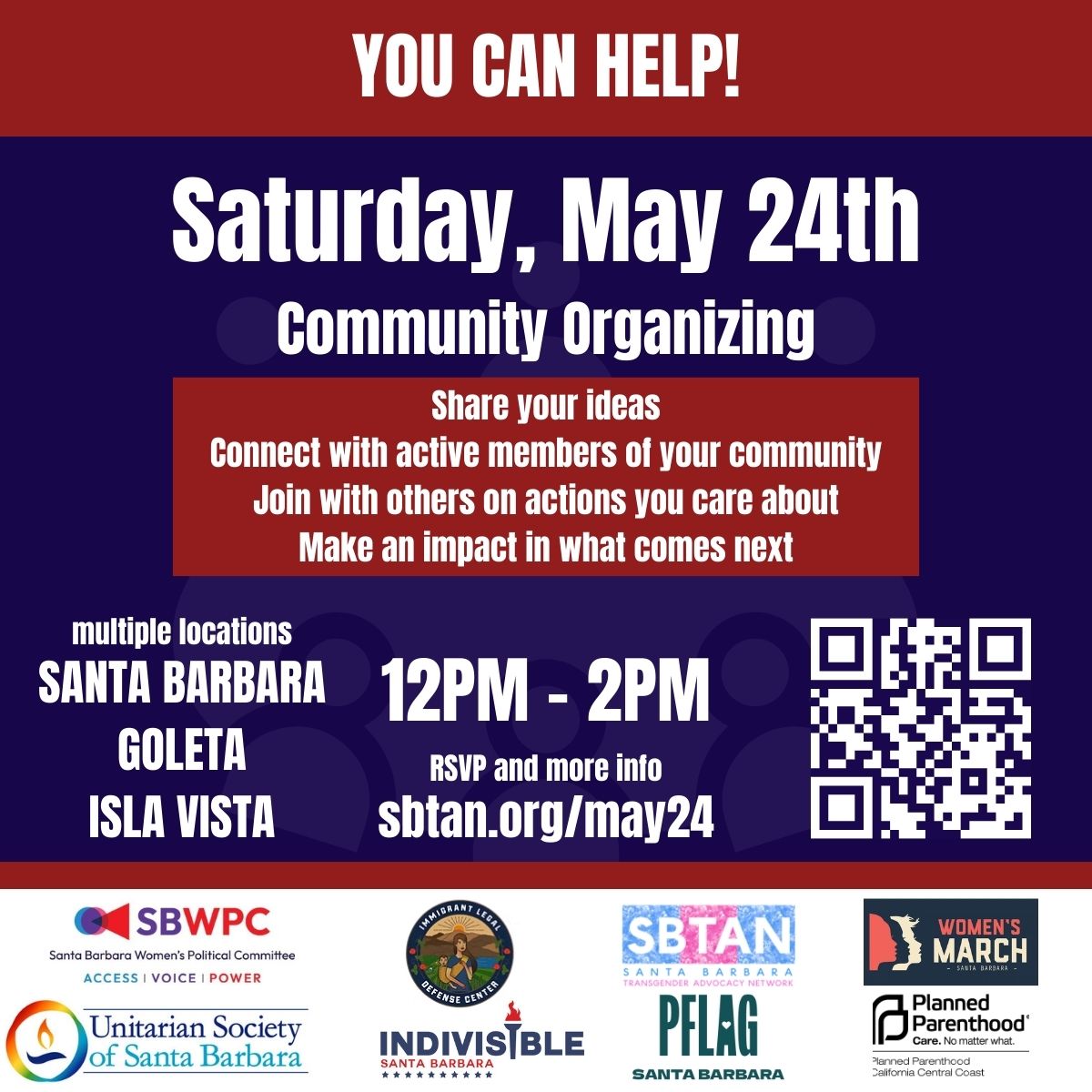 Looking to take action in your community? Join the Santa Barbara Transgender Advocacy Network for a countywide day of community organizing this Saturday, May 24th, from 12 to 2 PM in Santa Barbara, Goleta, and Isla Vista.