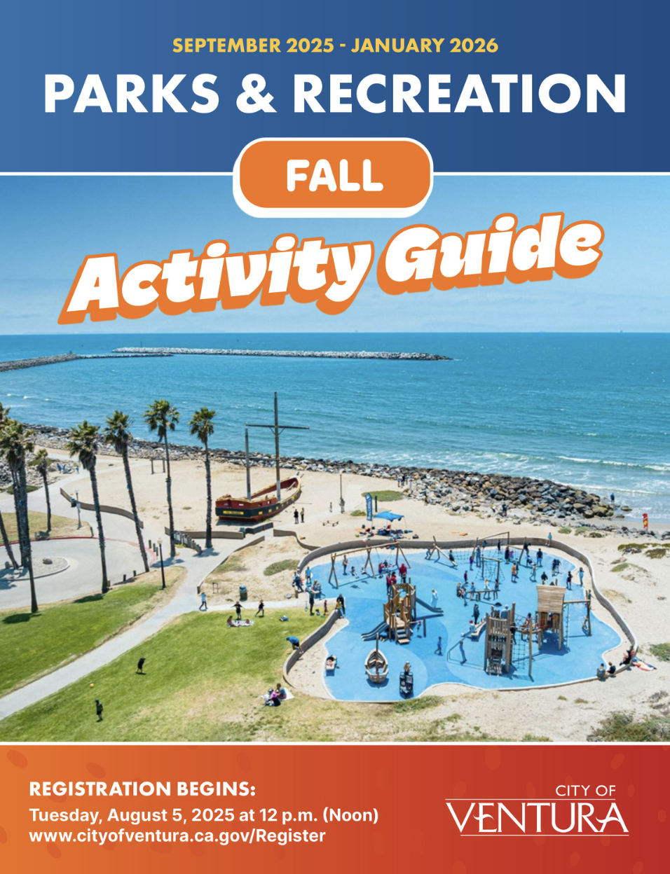 VENTURA — The City of Ventura is excited to announce the release of its Fall Parks and Recreation Activity Guide! Registration begins Tuesday, August 5, 2025, at 12:00 p.m. and will be available online, over the phone, or in person at City Hall, located at 501 Poli Street in Room 226. Registration information and policies are on page 43. Discover hundreds of upcoming classes, programs, and events scheduled from September through January at www.cityofventura.ca.gov/ActivityGuide