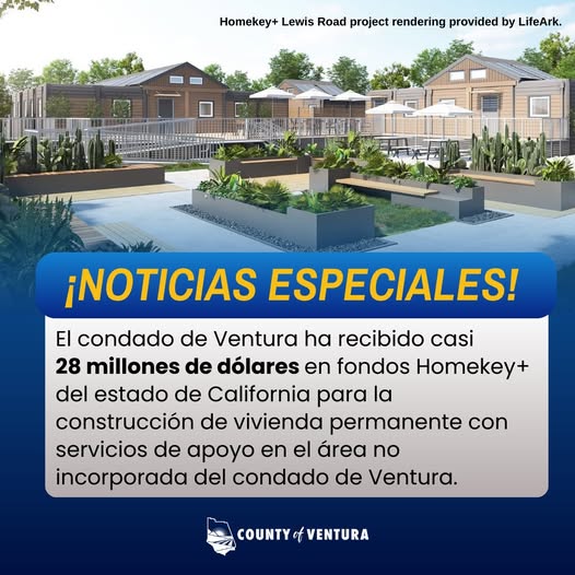 El Condado de Ventura se complace en anunciar que recibirá cerca de $28 millones en fondos estatales para desarrollar vivienda permanente con servicios de apoyo cerca del 1732 S. Lewis Road, en el área no incorporada del Condado de Ventura.