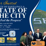 SANTA PAULA — The City of Santa Paula welcomes all Santa Paula residents, business owners, partners and supporters, to attend the annual State of the City event on June 5th. The event will take place at the Ventura County Agriculture Museum, located at 926 Railroad Ave., Santa Paula, CA 93060.