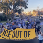 Led by those carrying a banner that read “ICE OUT OF CALIFORNIA” the protesters marched down the residential streets in Santa Maria calling for the end of ICE activities in the region.