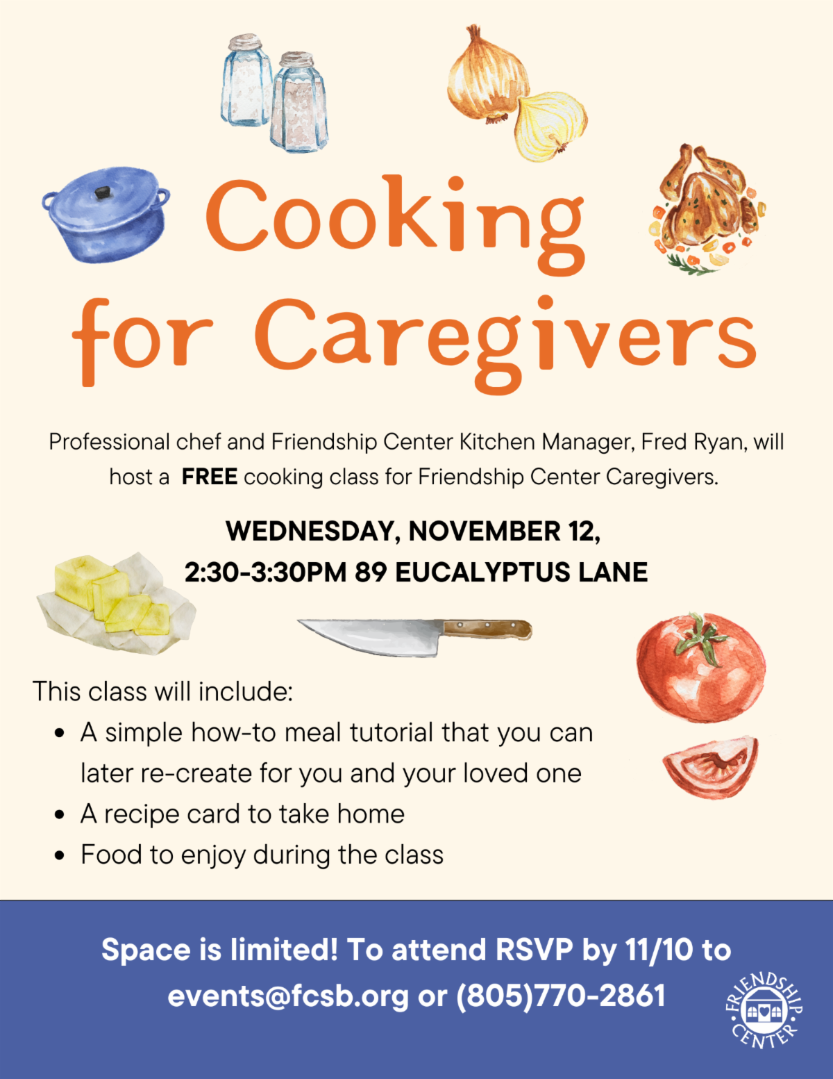 - November 12th: Cooking for Caregivers (RSVP HERE by 11/10)