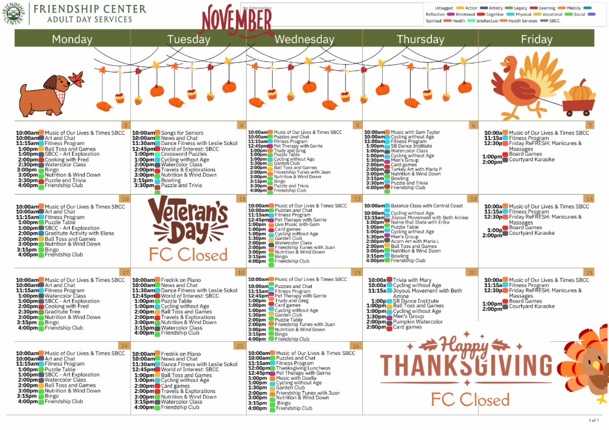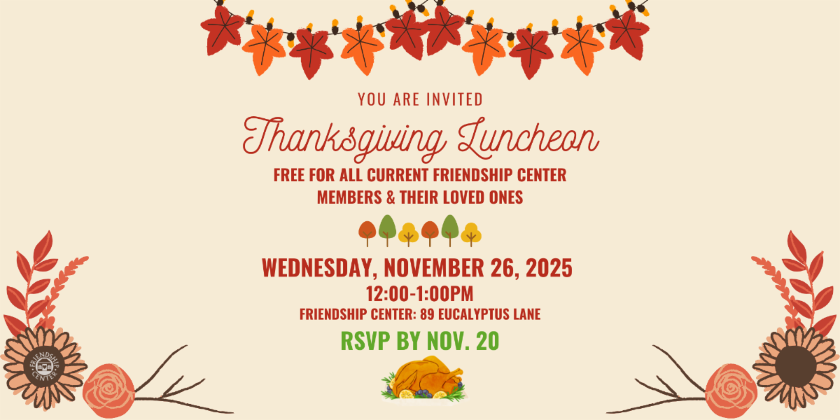 - November 27th & 28th: Friendship Center Closed for Thanksgiving