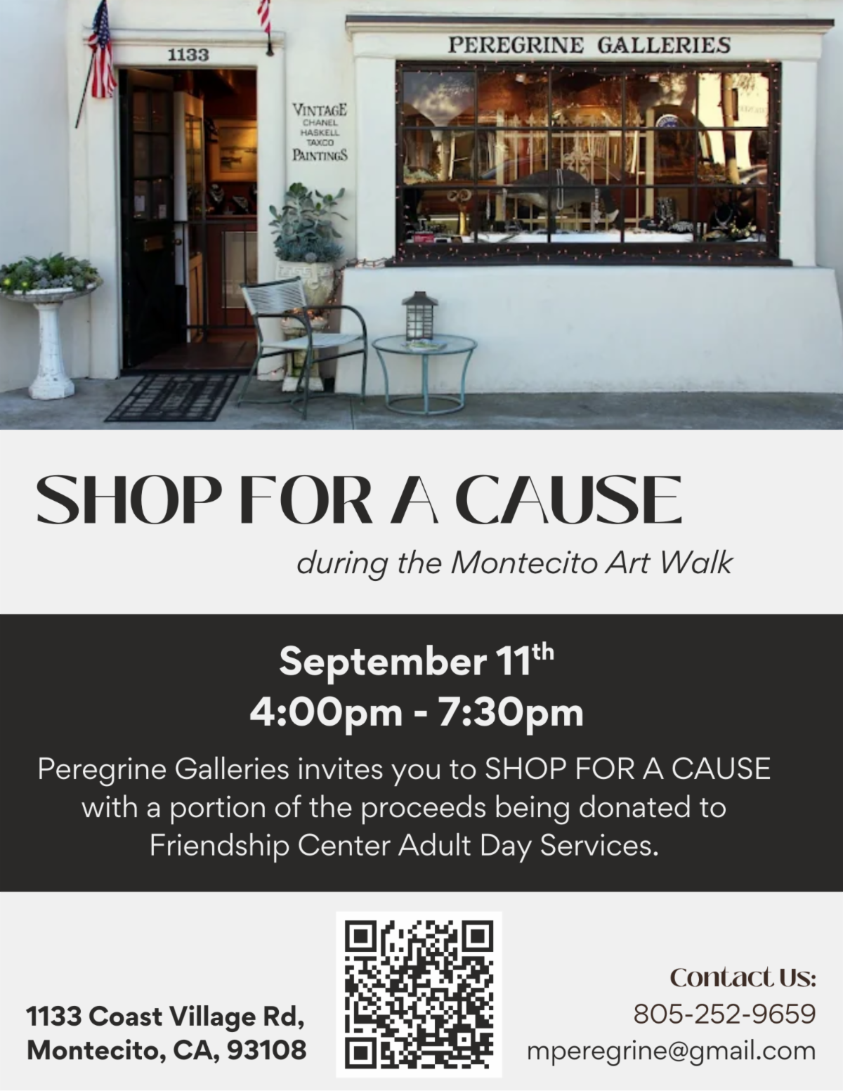 • September 11th – Shop at Peregrine Galleries during the Montecito Art Walk for a percentage of sales to go to Friendship Center