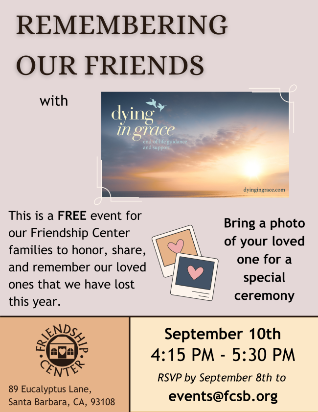 • September 10th – Remembering our Friends with Dying in Grace (RSVP HERE)