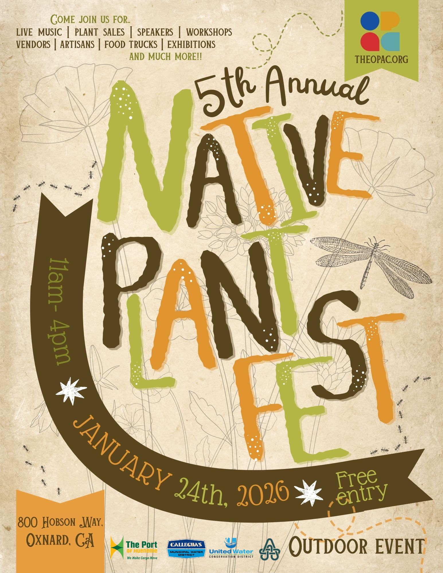Events, Local, News Jan. 24 — Rooted in Nature, Powered by Art: OPAC’s Native Plant Fest returns to Oxnard by Community Contributor • January 1, 2026 • Comments Off on Jan. 24 — Rooted in Nature, Powered by Art: OPAC’s Native Plant Fest returns to Oxnard CLICK HERE FOR MORE INFORMATION