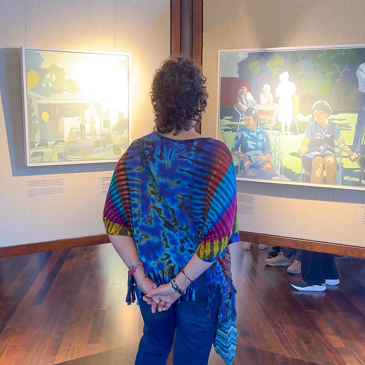 The exhibit features 42 original paintings by artists Robin Angelides, Ruth Askren, Liz Blum, Steve Brown, John von Buelow, Larry Deeds, Jessica Falcone, Karen Fedderson, Susan Flanigan, Marian Fortunati, Barbara Freund, Carole Garland, Russell Hunziker, Virginia Kamhi, Nora Koerber, Timothy Kitz, Monica List, Nathan Mellott, Jane Mick, Rachel Sylvers, Bonnie Taylor, Laura Wambsgans, and Sharon Weaver.