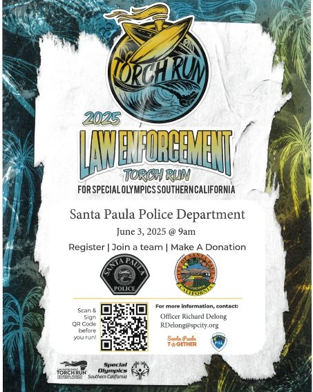 The Santa Paula Police Department is grateful for the partnership with Special Olympics, our community sponsors, and “Santa Paula Together”, the non-profit organization for our Police Activities League (PAL).