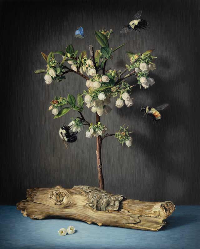 Courtesy image: SUSAN McDONNELL Bumblebees and Blueberry Blooms, 2026 | 20 x 16 inches | oil on panel.