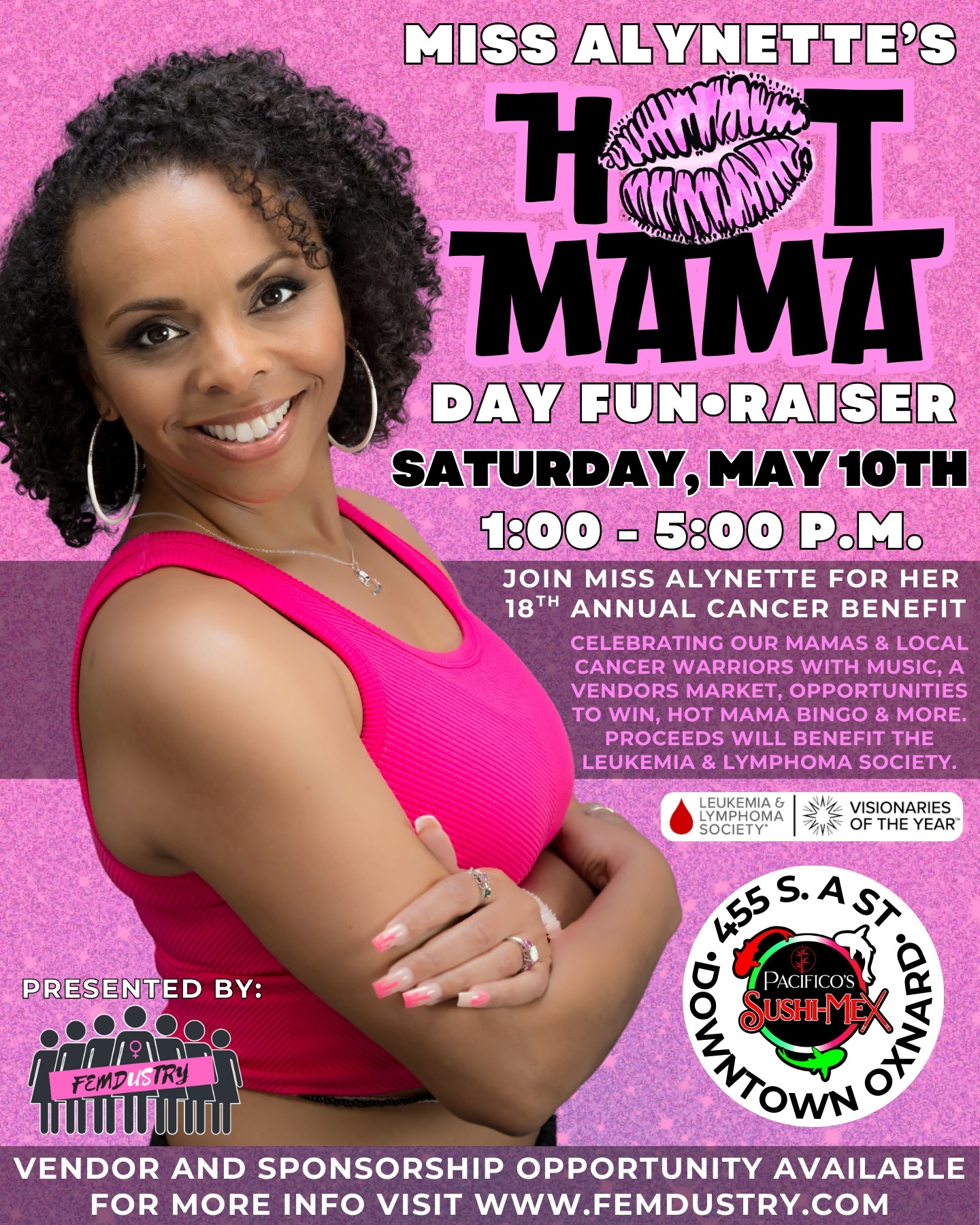 OXNARD — Miss Alynette’s 18th annual cancer benefit, the Hot Mama Day Fun•raiser, will be held from 1 to 5 p.m. Saturday, May 10 at Pacifico’s Sushi Mex, 455 S. A St., Oxnard.
