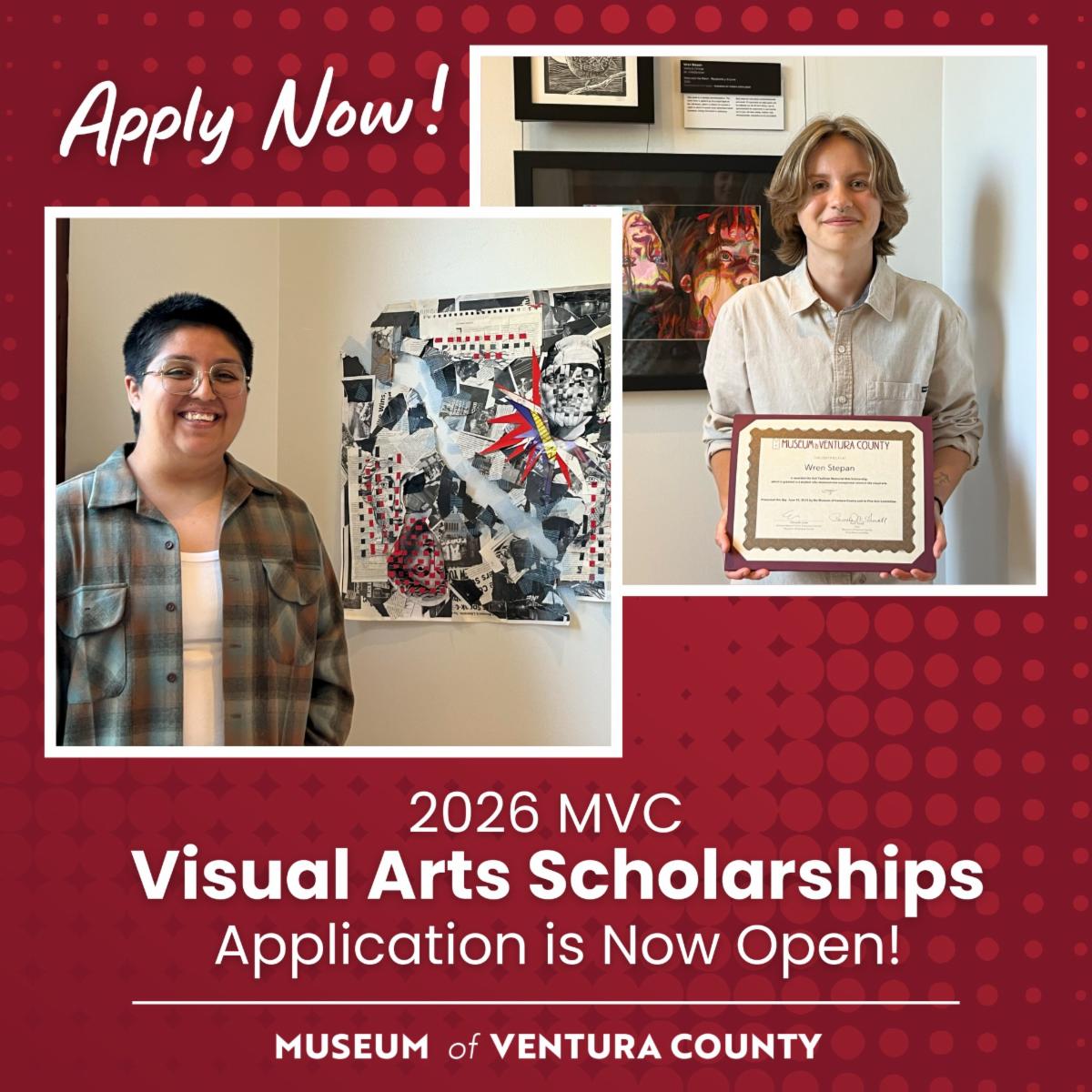 The Museum of Ventura County is awarding $20,000 in scholarships to support emerging visual artists residing in Ventura County, made possible through the generosity of the Gail Faulkner Memorial Arts Scholarship and the Bonita C. McFarland Scholarship for the Visual Arts.