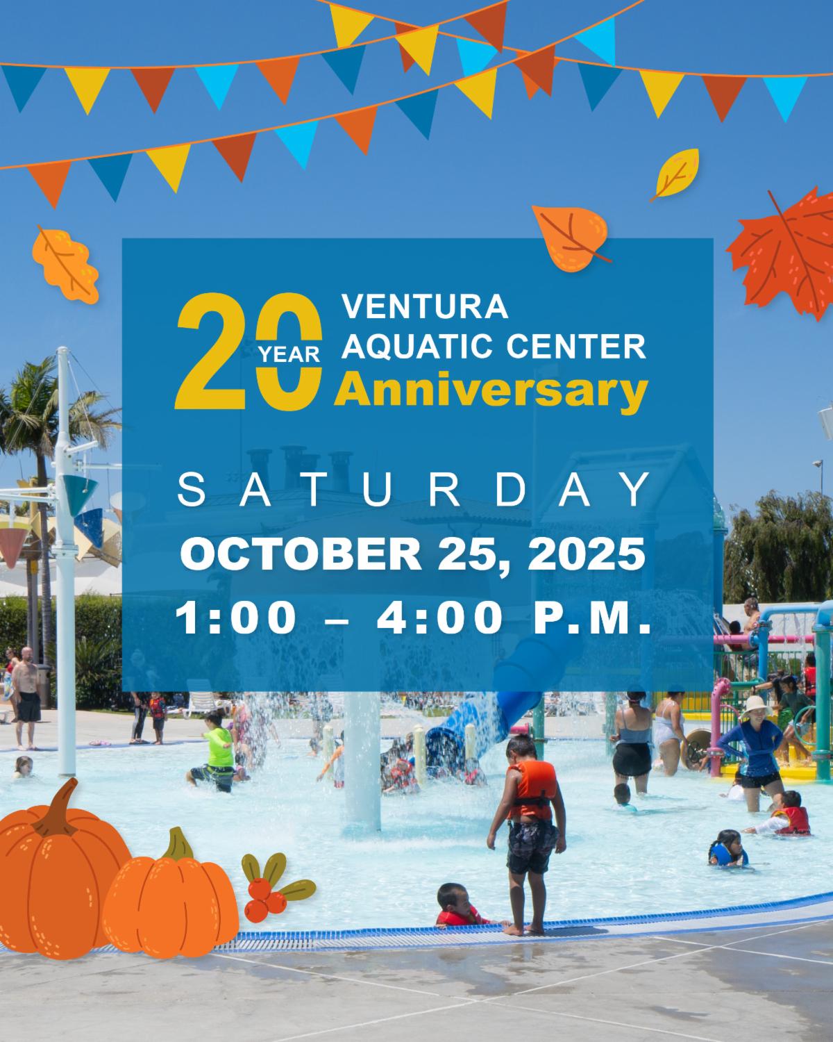 VENTURA — Dive into fun at the Ventura Aquatic Center’s 20th Anniversary Celebration on Saturday, October 25, 2025, from 1:00 to 4:00 p.m. Entry is free!