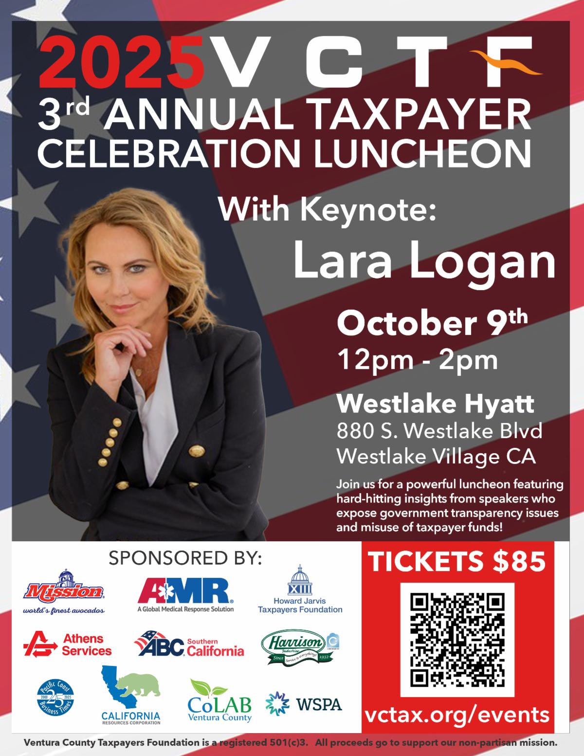 Oct. 9 — Ventura County Taxpayers Foundation to present 3rd annual Taxpayer Celebration Luncheon with keynote speaker Laura Logan