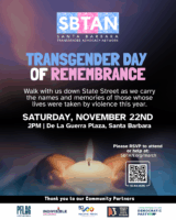 SANTA BARBARA — The Santa Barbara Transgender Advocacy Network (SBTAN) invites the community to come together in solidarity for Transgender Day of Remembrance (TDOR) on Saturday, November 22 at 2:00 p.m. at De La Guerra Plaza in downtown Santa Barbara.