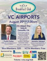 Education, Finance, Government, Local, News Aug. 20 — Ventura County Taxpayers Association (VCTA)’s will present Breakfast Club talk on VC Airports by Community Contributor • January 1, 2025 CLICK HERE FOR MORE INFORMATION Read more →