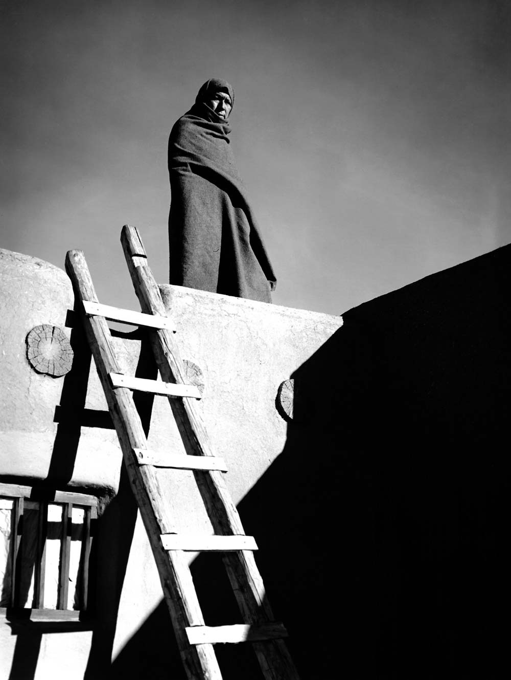 “Taos Indian on Rooftop” by Horace Bristol, 1940, Gelatin silver print, Gift of Leslie and John Nichols.