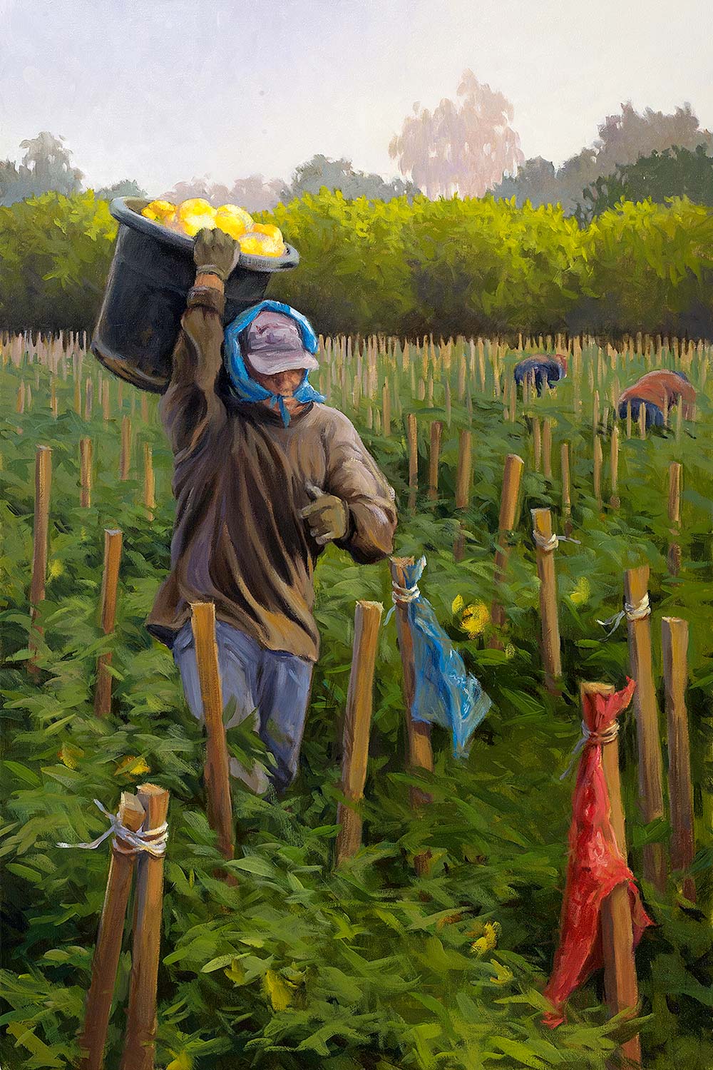 “View to Town” by Harvey Cusworth, 2023, Oil on canvas, 24 x 24 inches, Available for purchase.