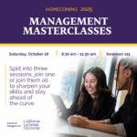 Homecoming is the perfect time to reconnect with old friends and reignite your professional spark. The School of Management is proud to invite you to “Management Masterclasses: Refresh, Revitalize, Reconnect”. Split into three short sessions, join one or join them all to sharpen your skills and stay ahead of the curve in AI, Marketing, and Talent Management.