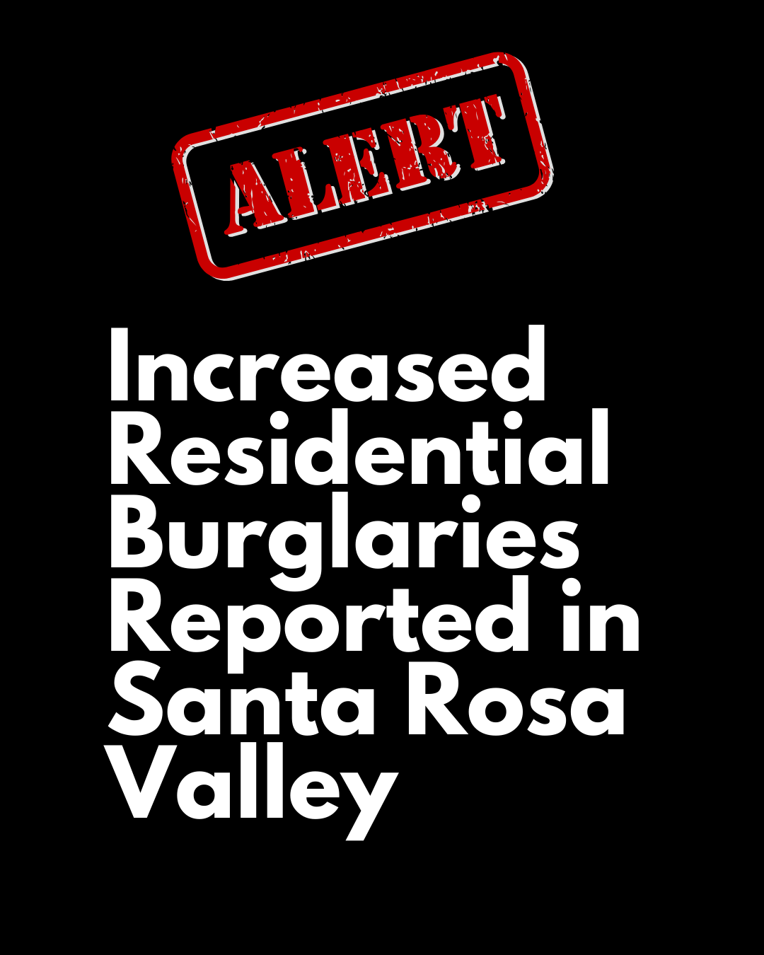 The Ventura County Sheriff’s Office has reported an increase in residential burglaries in the Santa Rosa Valley. Please take extra precautions to keep your home and neighborhood safe.