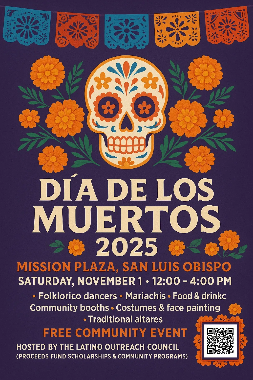 Nov. 1 — The Latino Outreach Council will present a ‘Día de los Muertos 2025’ celebration at Mission Plaza, San Luis Obispo
