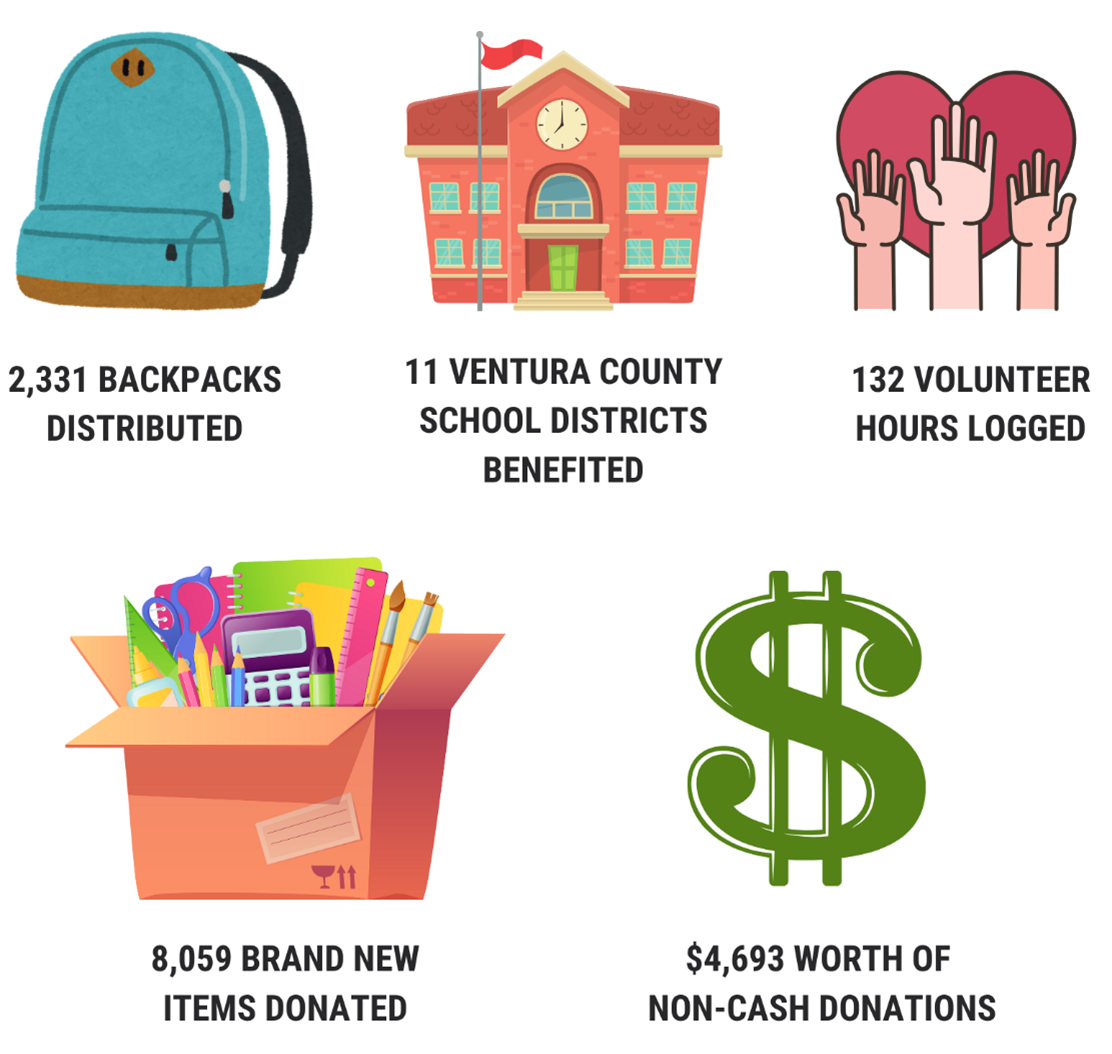 On behalf of all of us at United Way of Ventura County, thank you for your participation in our 2025 Stuff the Bus campaign. At the conclusion of our campaign, we distributed over 2,300 backpacks filled with essential school supplies to students in Ventura County experiencing homelessness. Thanks to your donation, you have helped pave the path to academic success for unhoused youth.
