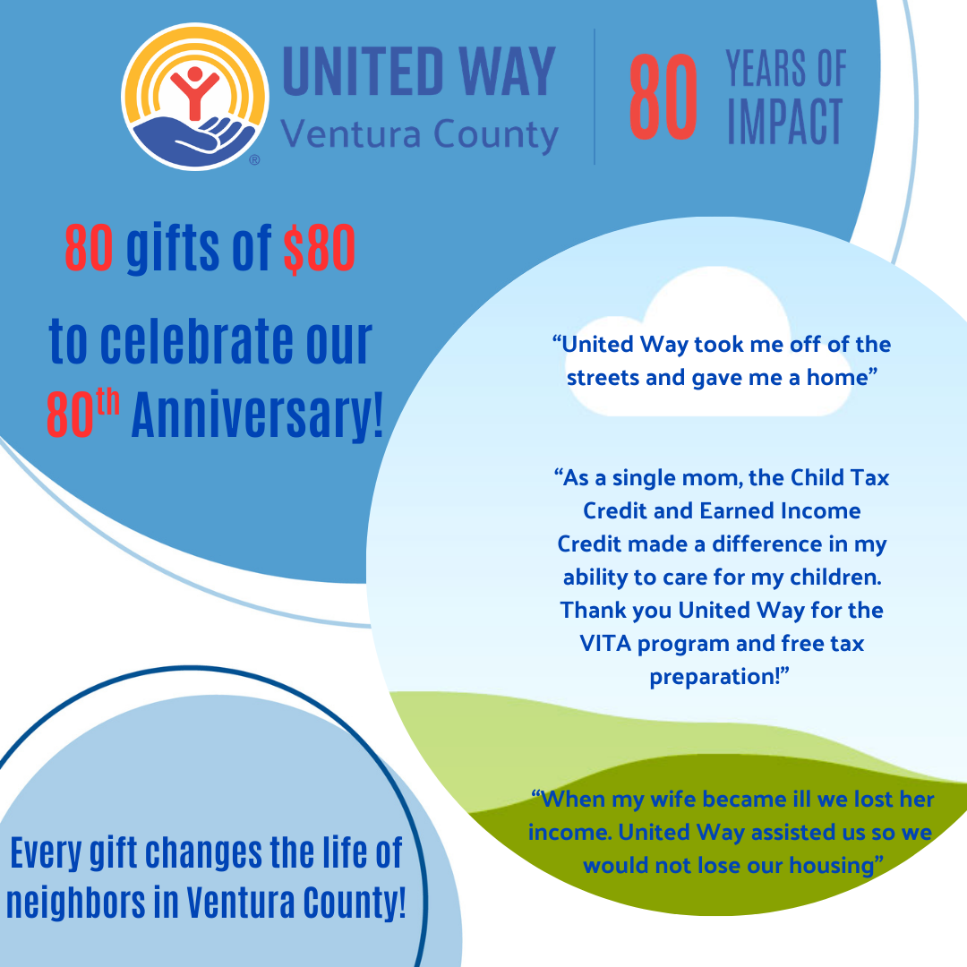 Business, Cultural, Finance, Local, News United Way of Ventura County — The latest news for you by Community Contributor • March 19, 2026 • Comments Off on United Way of Ventura County — The latest news for you Will you join us to make a difference in the lives of our neighbors? Make your gift today !80 for $80 United Way of Ventura County | 702 County Square Dr. Suite 100 | Ventura, CA 93003 US