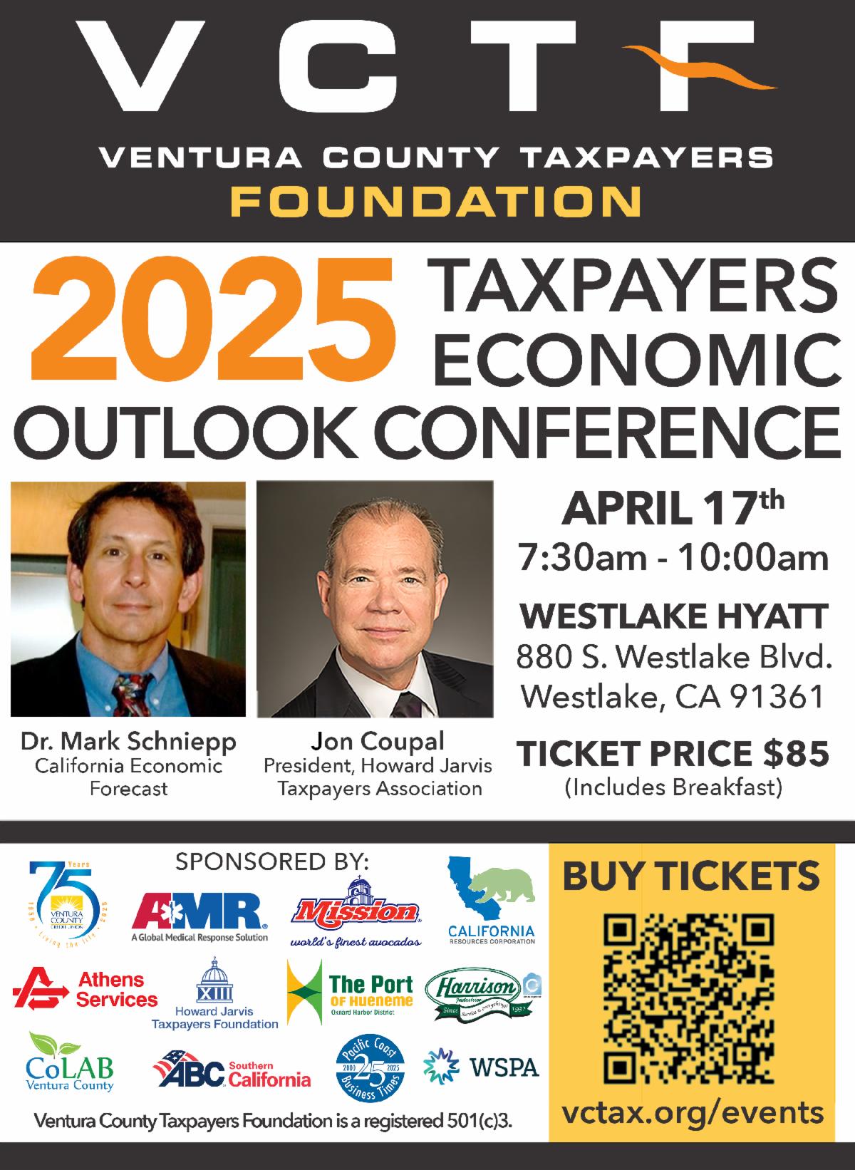 | Upcoming Events: Join us on April 17th for our first Foundation event for 2025 as we host our annual Taxpayer’s Economic Outlook with Dr. Mark Schniepp and Howard Jarvis’s Jon Coupal. A few tickets are still available for this event on Thursday – RSVP today at the link below. |
